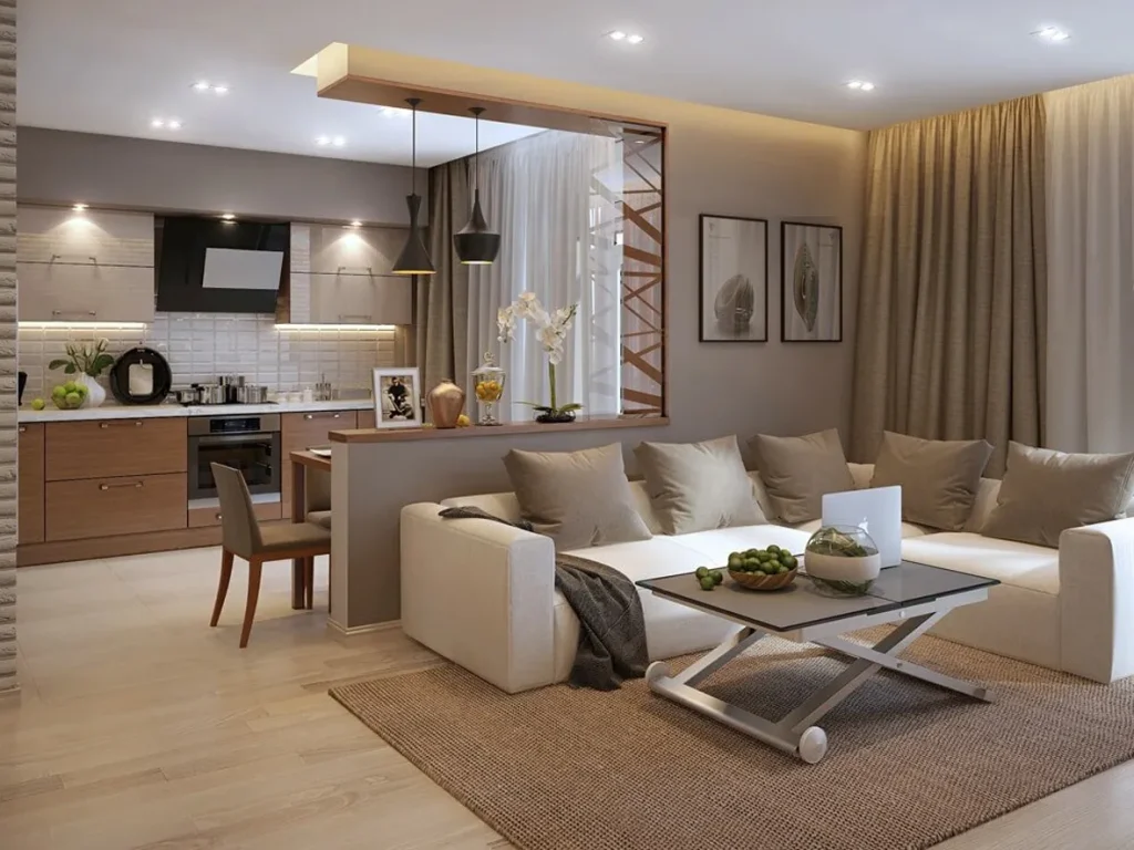 Цвет кухни – это не менее важный аспект, влияющий на общее восприятие пространства. Теплые оттенки, такие как кремовый, бежевый или терракотовый, создадут уютную атмосферу. Холодные тона, такие как серый или белый, подчеркивают современность и чистоту. Не бойтесь экспериментировать с акцентными цветами в декоре или аксессуарах, чтобы добавить индивидуальности.